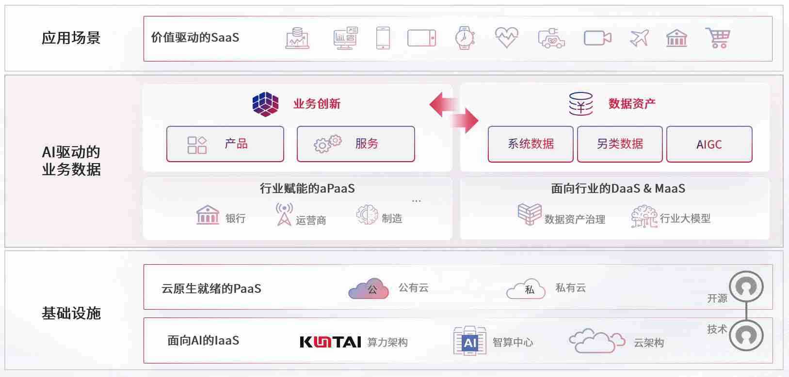 数字时代,,围绕企业数字化转型的关键要素,,,,z6com尊龙凯时数码开创性的提出数云融合战略和技术体系框架,,,,着力在云原生、、数字原生、、AI原生和信创产业上架构产品和服务能力,,为处在不同数字化转型阶段的快消零售、、汽车、、、金融、、医疗、、政企、、、、教育、、运营商等行业客户提供泛在的敏捷IT能力和融合的数据驱动能力,,,,构建跨界融合创新的数字业务场景和新业务模式,,助力企业级客户建立面向未来的核心能力和竞争优势,,,全面推动社会的数字化、、、、智能化转型升级。。。。